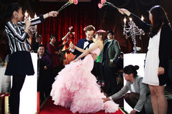搭配輕快法式曲風"巴黎日記"演繹出少女般純真與輕柔,仿佛是童話故事中天鵝湖場景,層層疊疊澎澎紗裙,化身為白天鵝輕舞飛揚。精巧水鑽耳飾與和電影黑天鵝有異曲同工之妙的羽毛頭飾流露出俏皮童話味,彷彿芭蕾舞者的精湛演出。
